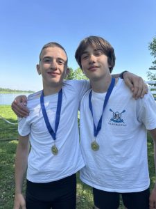 U iznimno uzbudljivoj utrci srebro su osvojili Matej Mikašinović i Šimun Hajsan, također kadeti A, oba u svojoj prvoj godini kadetske kategorije. Njih dvojica su u A finale ušli kao prvi u eliminacijama.
